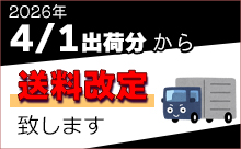 2019年10月1日消費税率10%変更に伴いまして送料を改定いたしました。なお、当社の製品(資材を除く)は軽減税率8%となります。(2019/10/9) |